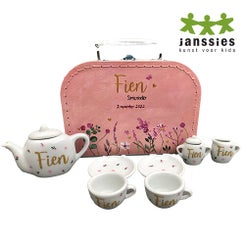 Een handbeschilderd poppenserviesje van Janssies is een lief kraam- of verjaardagscadeautje. Als herinnering, maar ook leuk om later mee te spelen. Beschilderd in de stijl van een geboortekaartje of naar eigen idee.